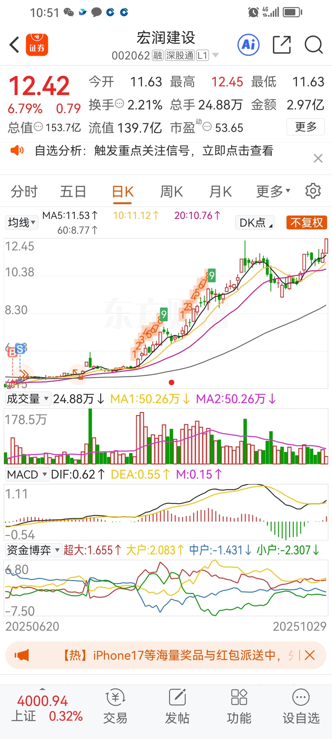 $宏润建设(SZ002062)$ 给我机会,不中用啊