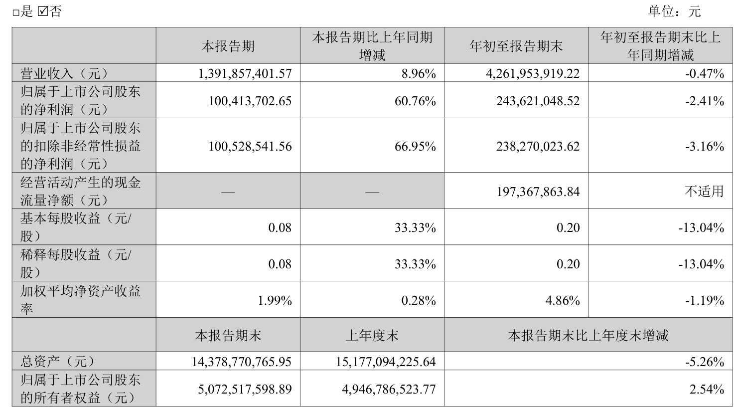 2025年前三季度,公司流动比率为1.27,速动比率为1.13。