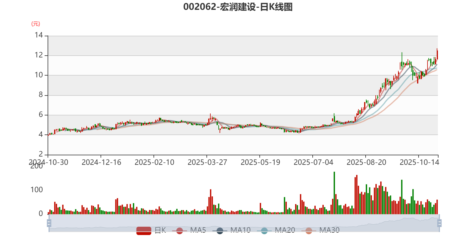 中证智能财讯宏润建设(002062)10月30日披露2025年第三季度报告。前三季度公司实现营业总收入42.62亿元,同比下降0.47%;归母净利润2.44亿元,同比下降2.41%;扣非净利润2.38亿元,同比下降3.16%;经营活动产生的现金流量净额为1.97亿元,上年同期为-5362.93万元;报告期内,宏润建设基本每股收益为0.2元,加权平均净资产收益率为4.86%。