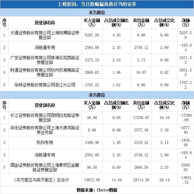 多主力现身龙虎榜,宏润建设跌停(11-03)