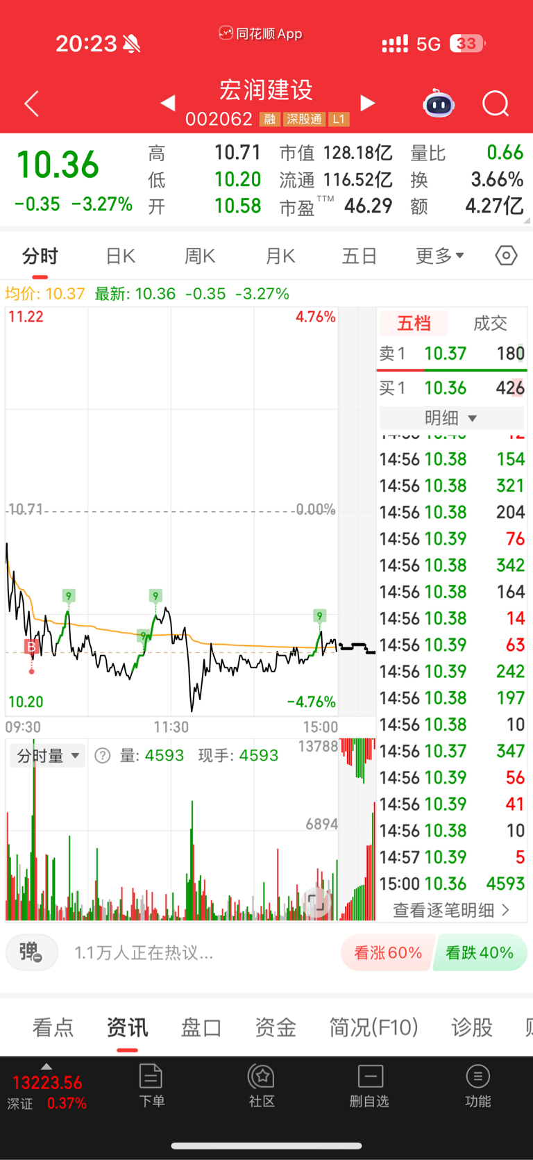 $宏润建设(SZ002062)$ 今天没T,降20个点了,吃波反弹跑路