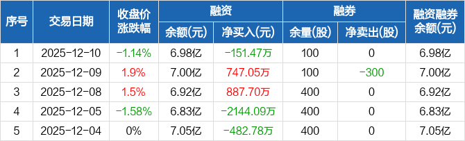 宏润建设:融资净偿还151.47万元,融资余额6.98亿元(12-10)