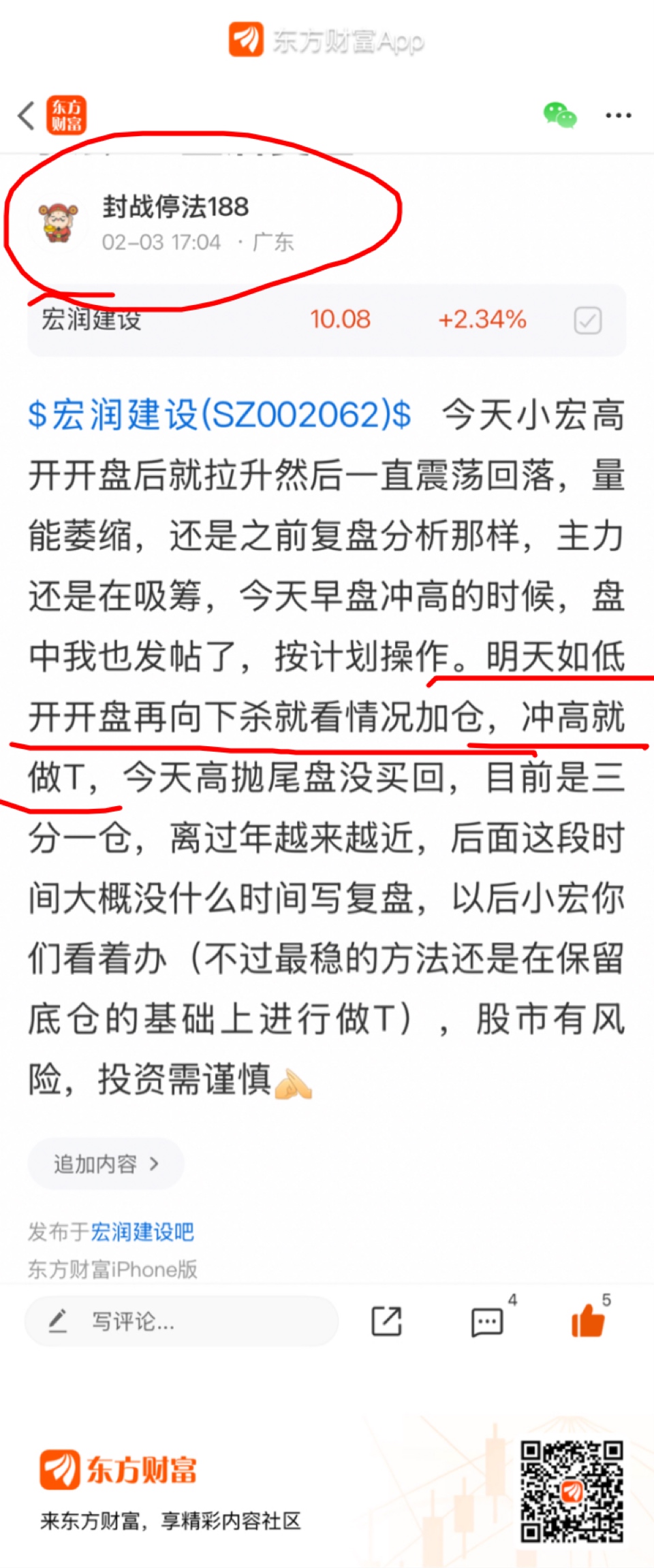 $宏润建设(SZ002062)$ 今天如果有关注我昨晚复盘的股友,今天做T应该又成功了,我盘中也发帖提醒过,要按计划操作,在评论区还给人骂
