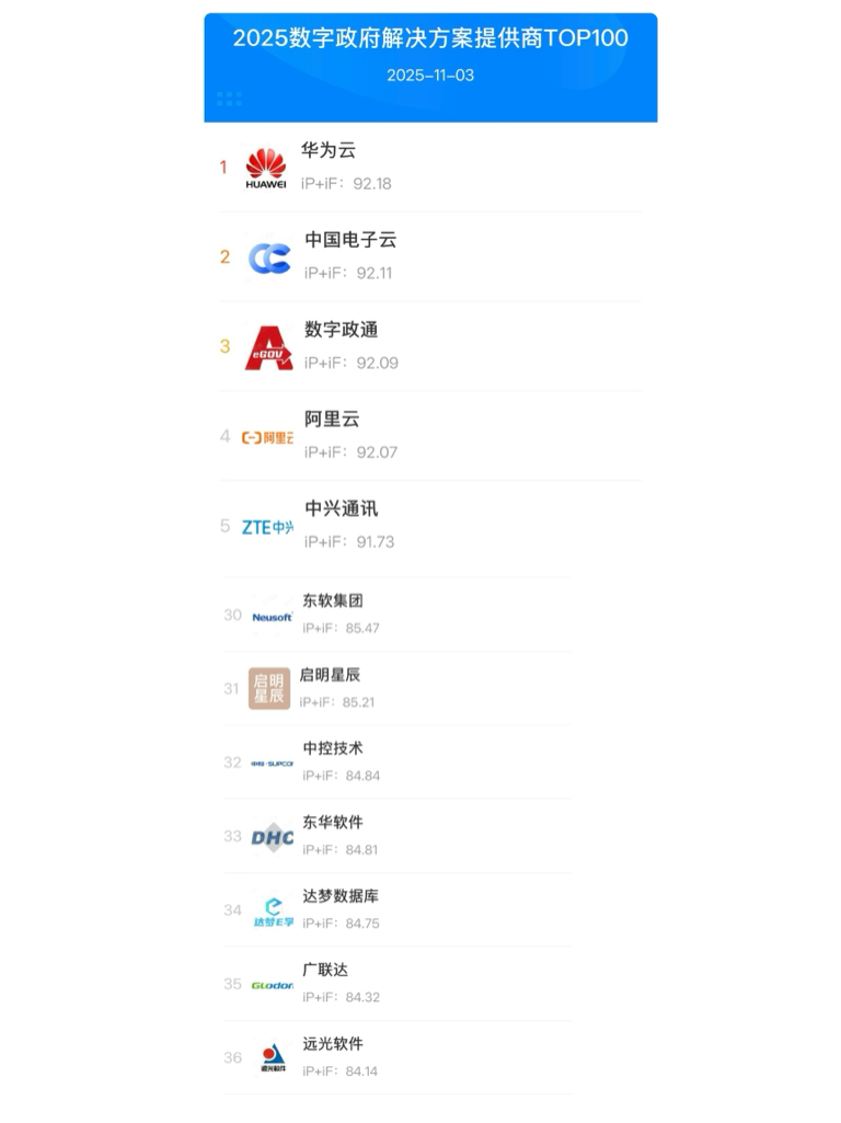 2025数字政府解决方案提供商-TOP100远光软件,排名:36位11月中标:1