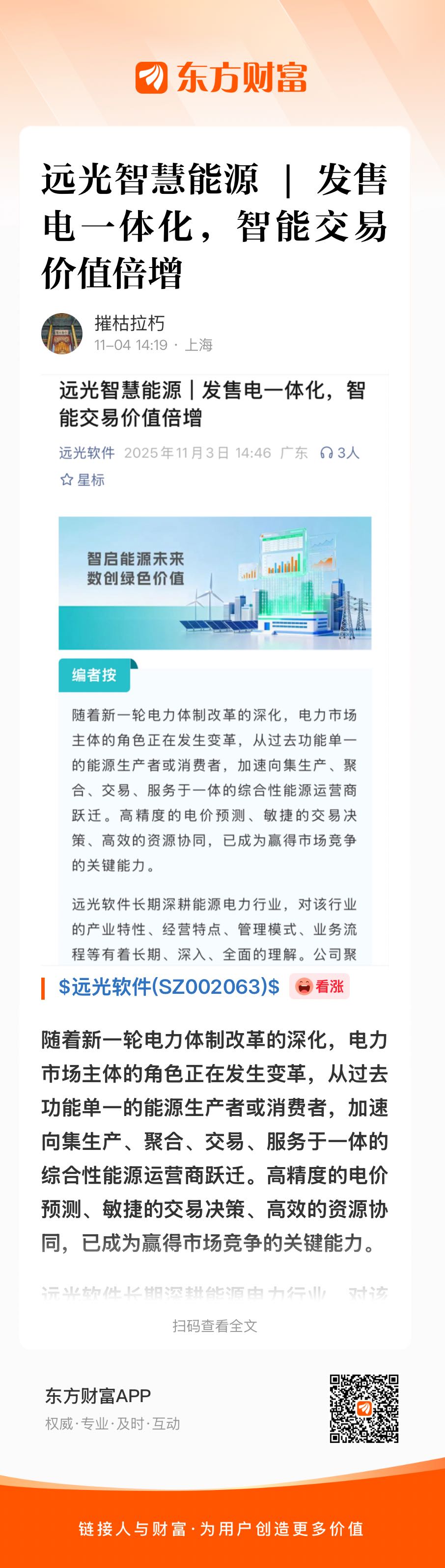 在电力市场这片充满机遇的蓝海中,谁能率先掌握数据与智能的罗盘,谁就能驾驭风浪,行稳致远。远光电力交易发售一体化平台,助力企业决胜于毫厘之间,共创绿色能源新未来。