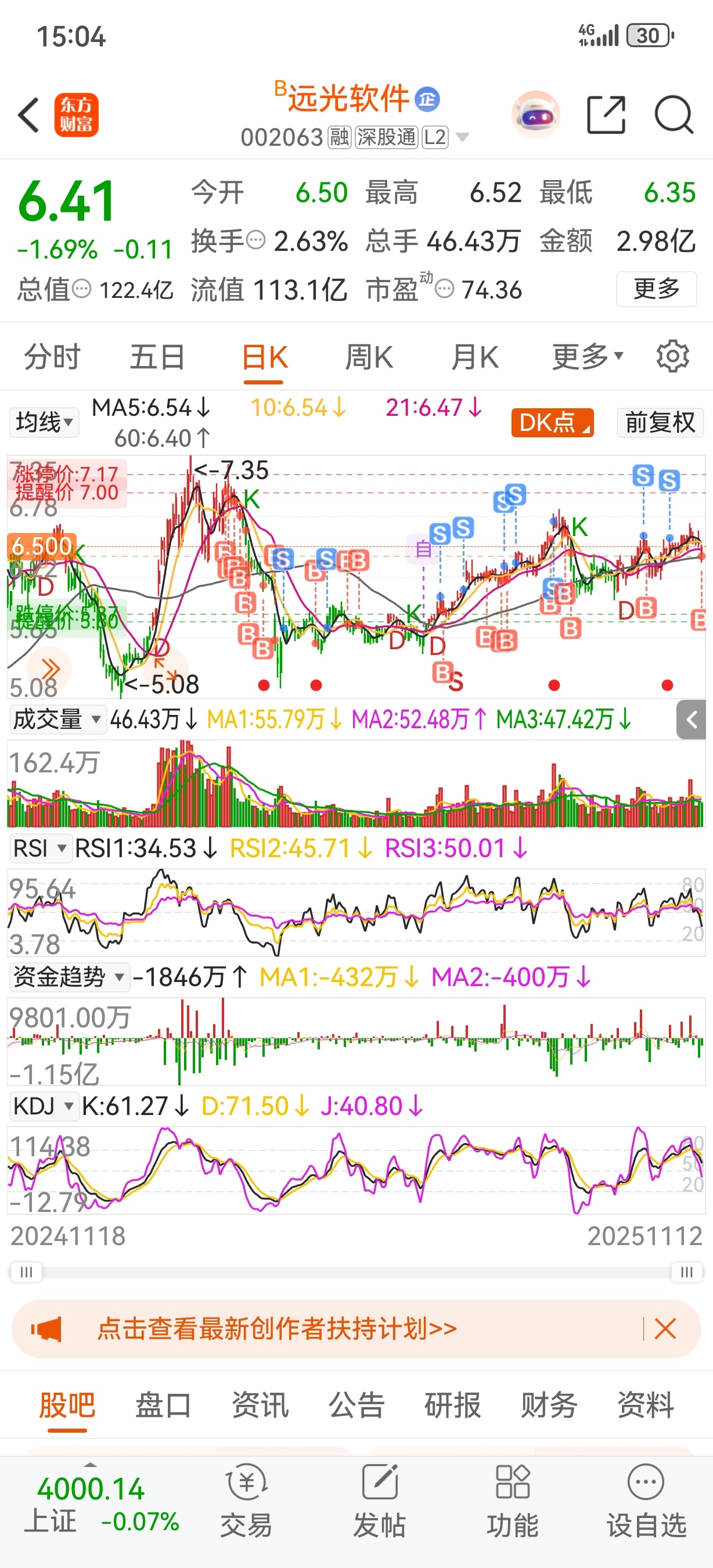 $远光软件(SZ002063)$ 再次跌破成本线,继续熬,不吃肉不走,先补点仓位。
