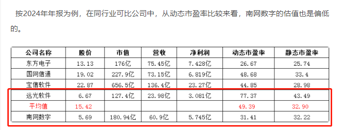 在同行业可比公司中,远光软件的估值也是偏低的。
