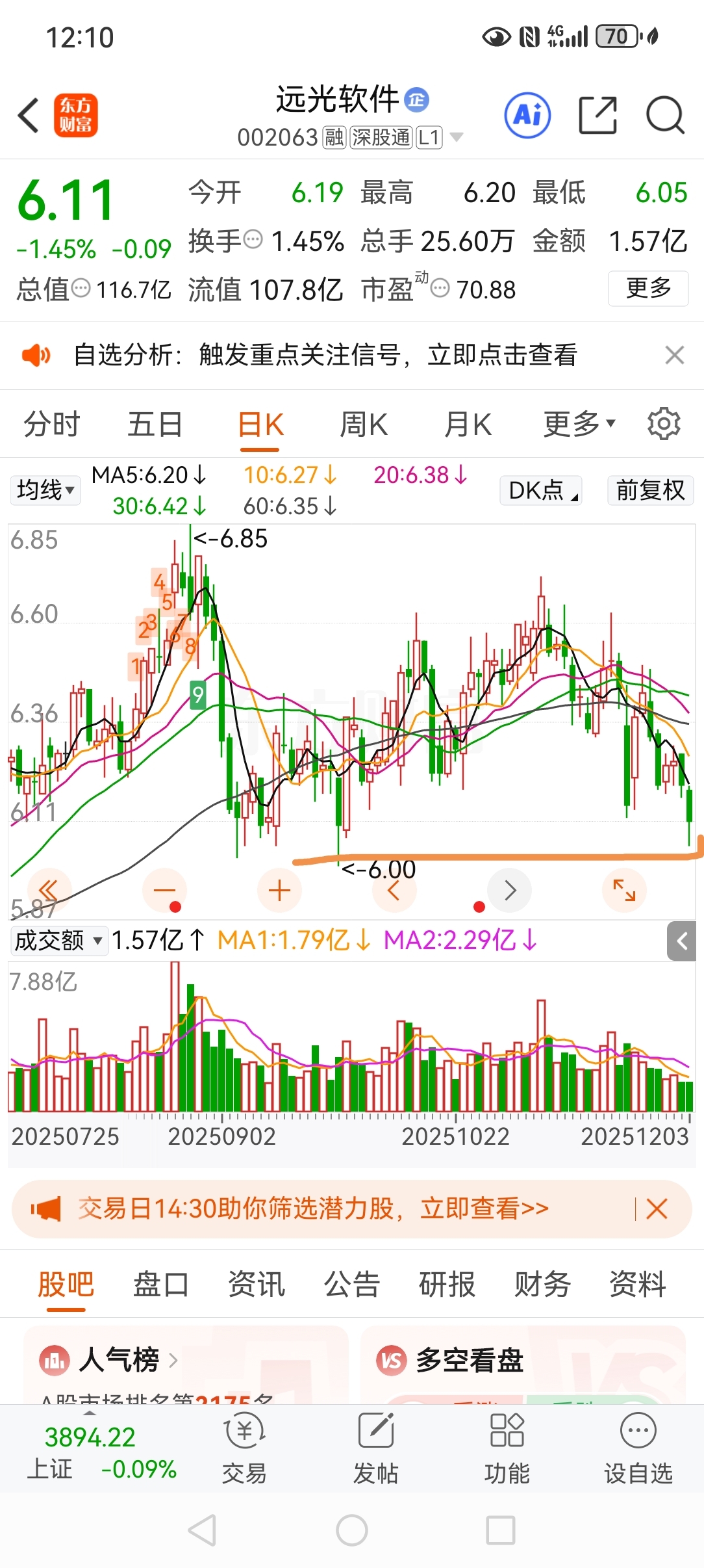 $远光软件(SZ002063)$ 感觉双底形态了,看明天!
