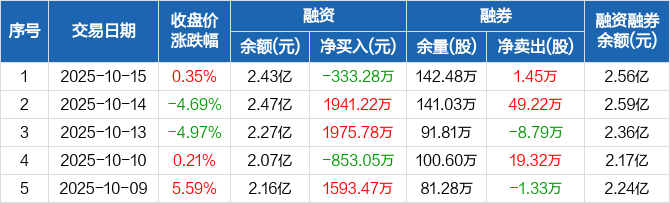 华峰化学:融资净偿还333.28万元,融资余额2.43亿元(10-15)