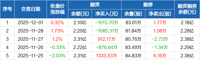 华峰化学:融资净偿还1013.7万元,融资余额2.1亿元(12-01)