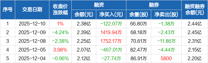 华峰化学:融资净偿还122.07万元,融资余额2.38亿元(12-10)
