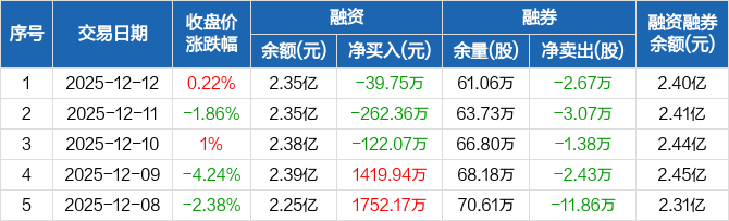 华峰化学:连续3日融资净偿还累计424.19万元(12-12)