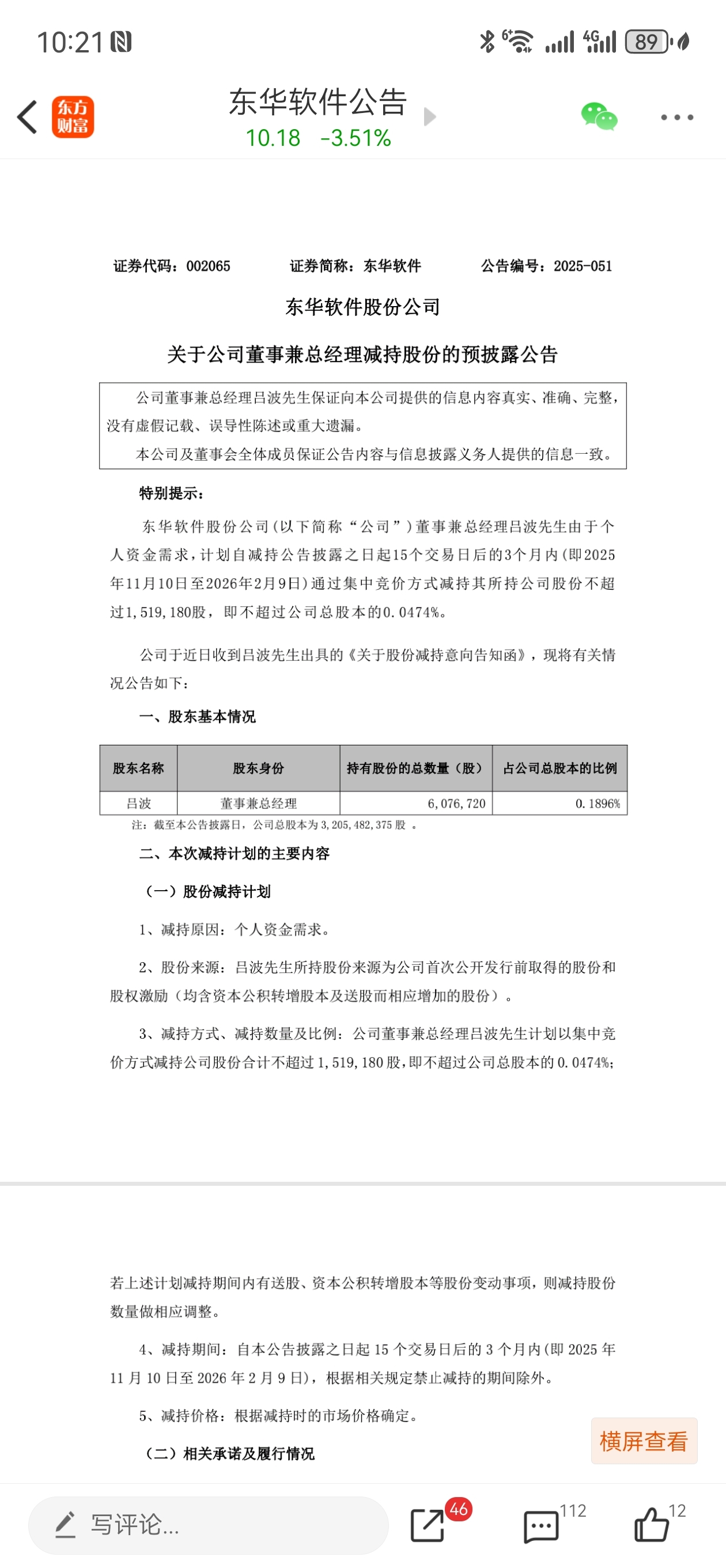 $东华软件(SZ002065)$ 薛向东夫妇减持的路上还未平息,现在总经理吕波也开始减持了,减持很正常,像他们这么操作非常不正常,失去股民民意将会走向退市的方向。