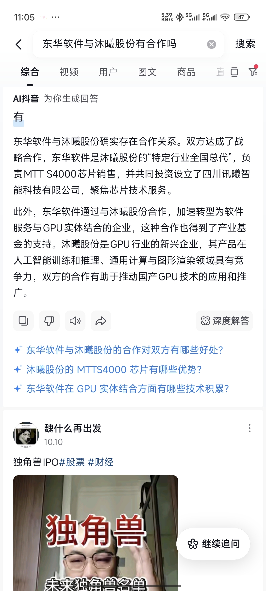 $东华软件(SZ002065)$ 给你们发点利好 今天沐曦上会了
