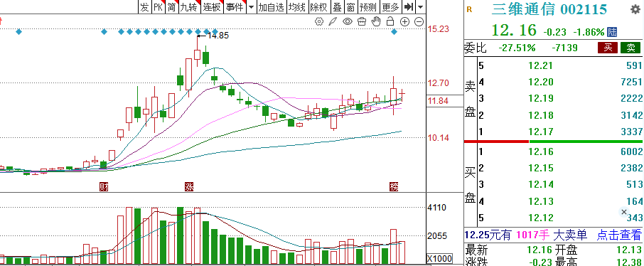 今天低开低走是符合早评的预期的,但是没有低开高走开启弱转强,所以今天还暂时没去,不过从整体的结构上看,今天震荡的幅度有点大,可是也在昨天的中阳线的包裹当中,而且还是缩量调整,也可以说是合理的震荡结构,最后收了上来也不足为奇了。公司的主营业务是通信业务和互联网营销,如互联网广告传媒,在海上商船卫星通信运营、安全通信应用、民营第三方通信基础设施运营等细分领域领先。主要客户包括三大运营商和铁塔公司,是最早布局海上卫星通信的企业,北向跟机构昨天大举流入,今天被焖在锅里,后市应该会有自救,容易形成阳包阴结构,等拐点出现再动。