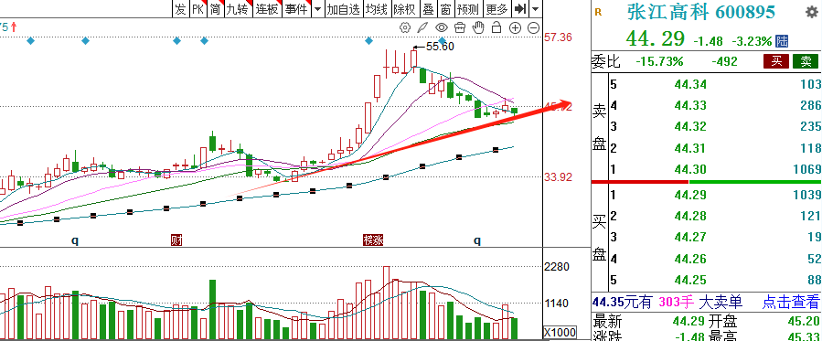 不幸的是,今天光刻机板块伴随着科技标继续领跌了,这已经是科技股连续第三天领跌了,自从被深地经济卡位之后,科技股就一蹶不振,深圳推动并购重组高质量发展行动方案真的的也是科技标方向,但影响力度好有限,仅仅是让深圳本地标出现行情而已,上海国改也被带动,张江高科没能被带起来,今天低开低走,昨天放量反包,今天缩量调整,早评说量能是今天的核心,只有继续放量才能做昨天的承接,才能完成新一轮的反抽,今天的阴线反包了昨天的止跌阳,形态上偏谨慎,但缩量调整,也说明不是真正的看空,在等一个反包的信号在去格局。作为光刻机的龙头,国产替代方向不会轻易结束行情的。