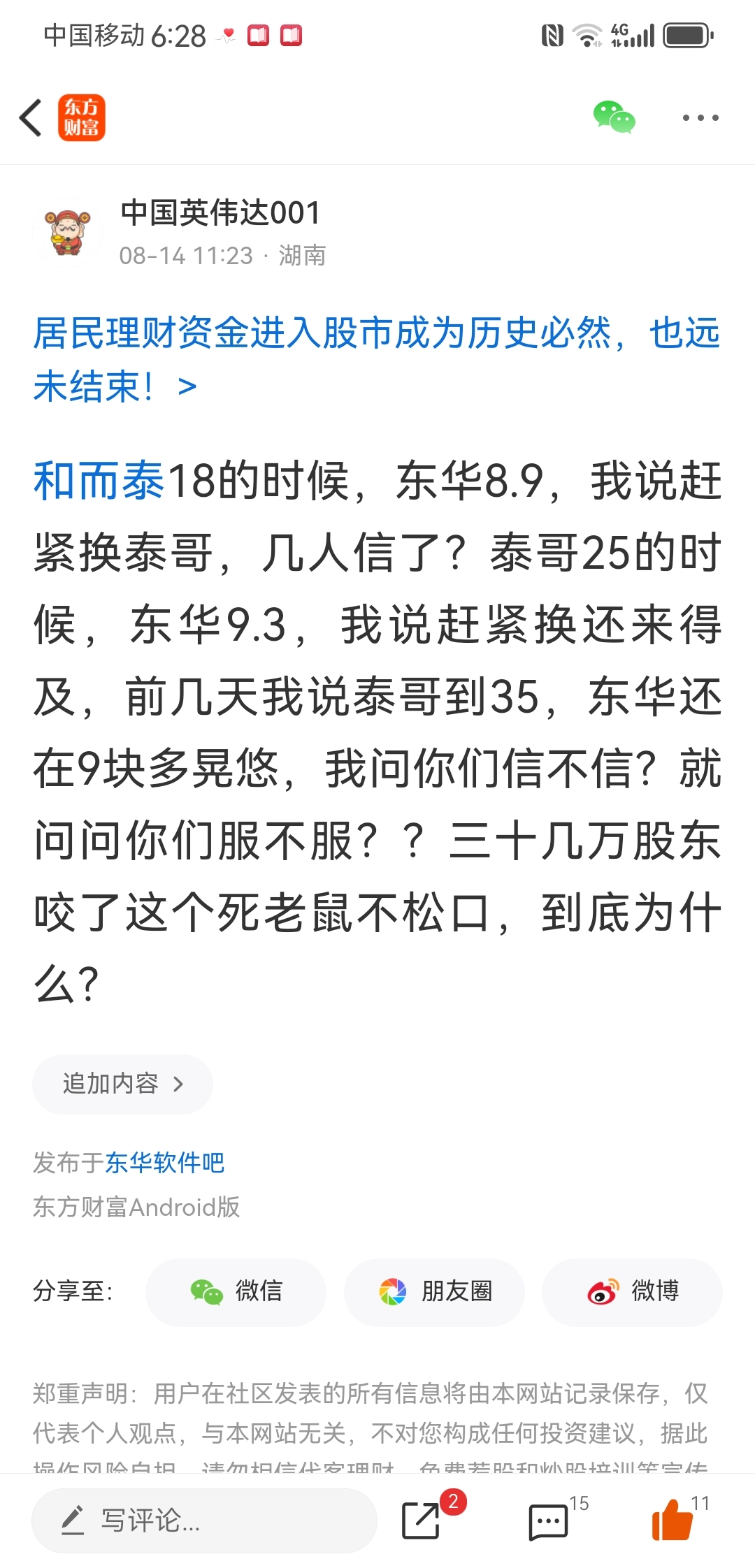 温馨提示: 1.根据《证券法》规定,禁止编造、传播虚假信息或者误导性信息,扰乱证券市场;2.用户在本社区发表的所有资料、言论等仅代表个人观点,与本网站立场无关,不对您构成任何投资建议。用户应基于自己的独立判断,自行决定证券投资并承担相应风险。《东方财富社区管理规定》