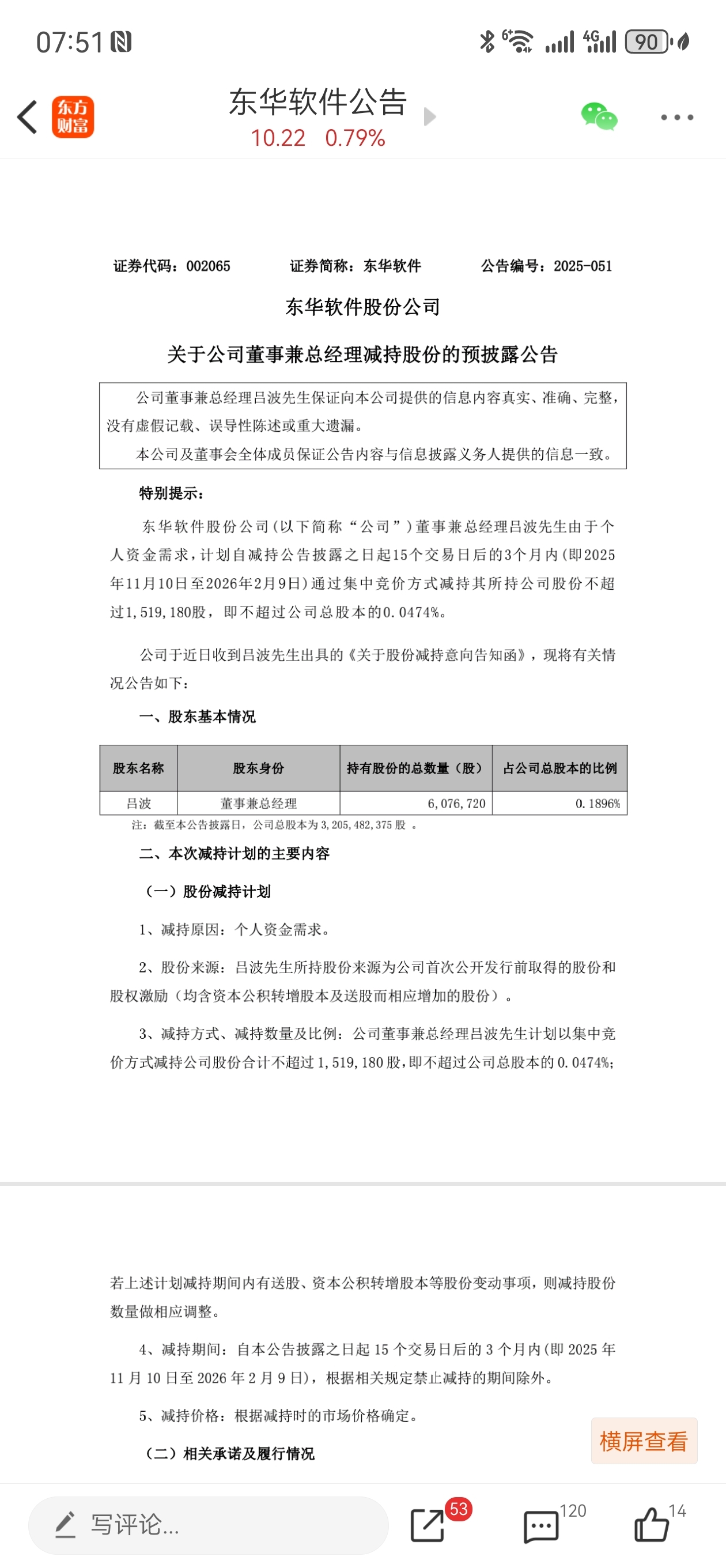 $东华软件(SZ002065)$ 记住大股东开始减持了,本来大股东想着好行情减持殊不知机构不买账,所以只有在股民看到了希望!