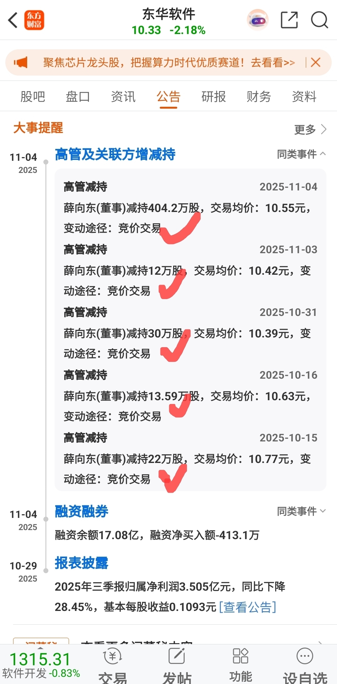 $东华软件(SZ002065)$ 小散们看下邪总减持套现完了没,铝总10日也要减持套现啦,小亏的能跑就跑吧。