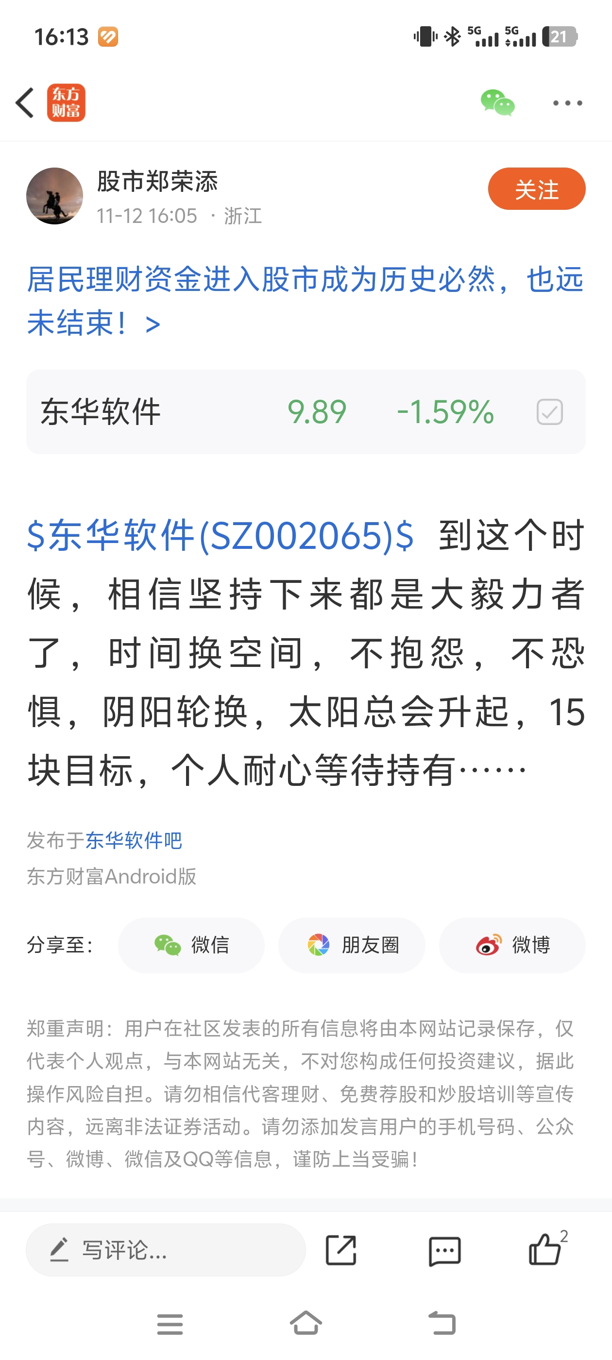 温馨提示: 1.根据《证券法》规定,禁止编造、传播虚假信息或者误导性信息,扰乱证券市场;2.用户在本社区发表的所有资料、言论等仅代表个人观点,与本网站立场无关,不对您构成任何投资建议。用户应基于自己的独立判断,自行决定证券投资并承担相应风险。《东方财富社区管理规定》