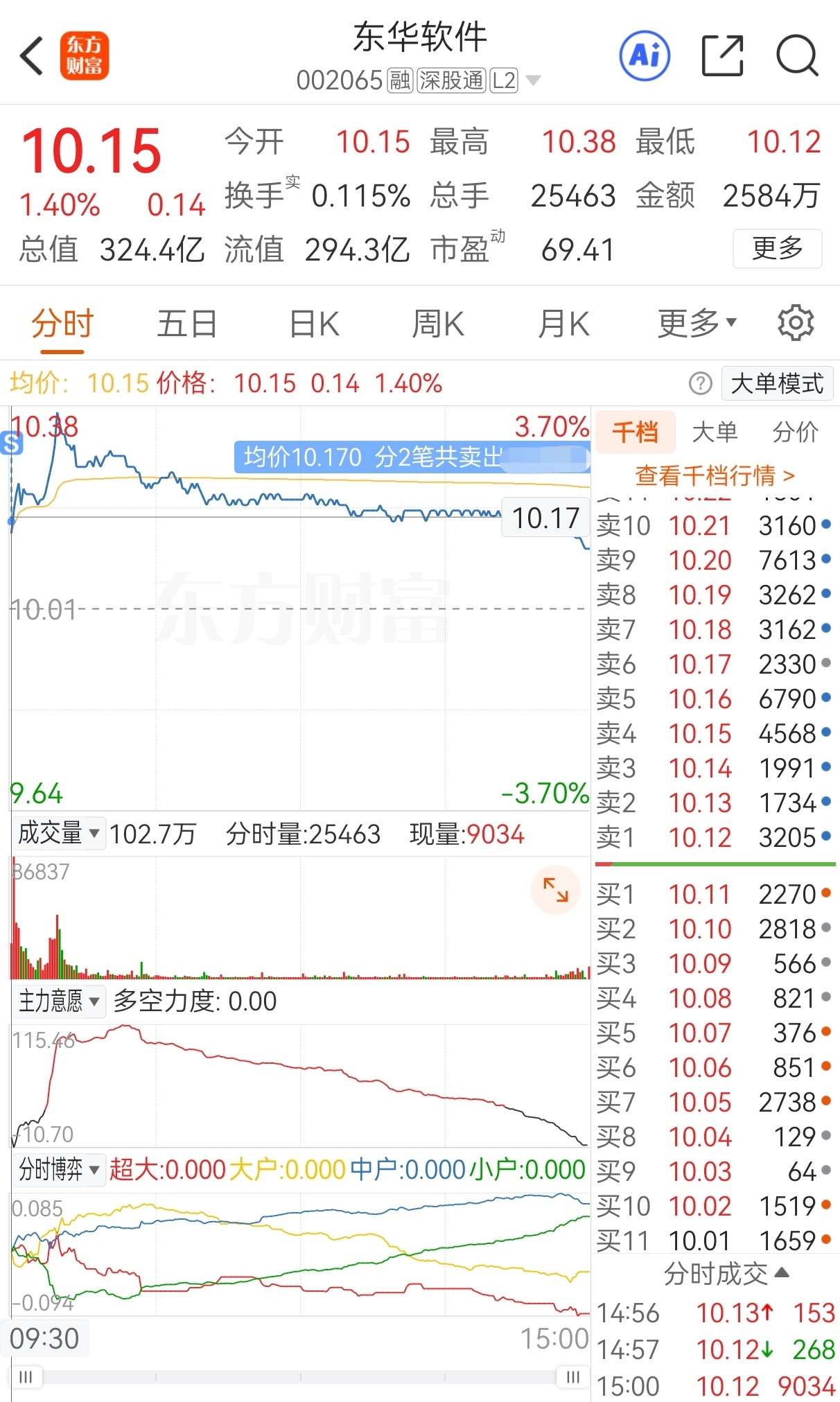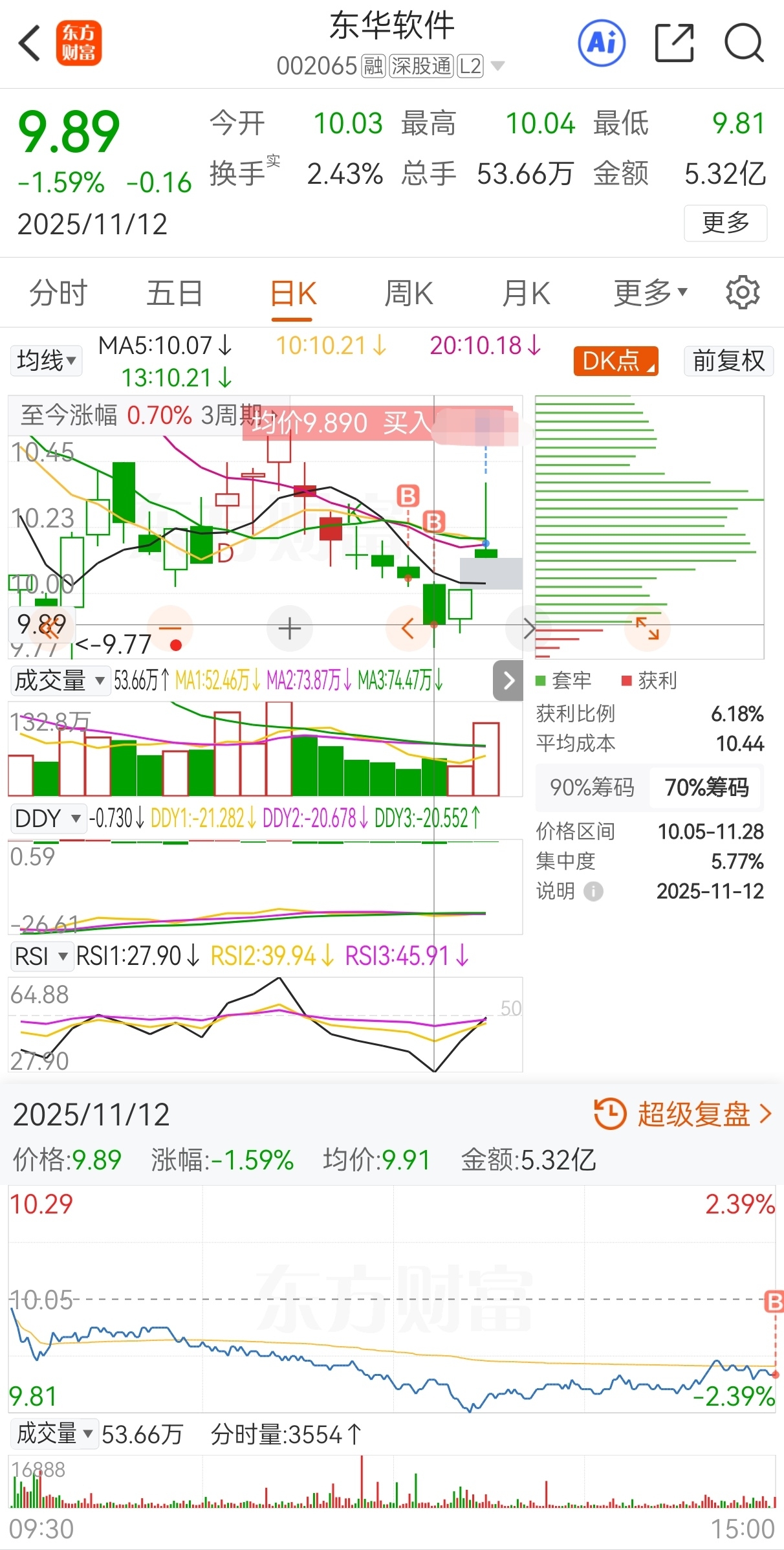 原计划今买明卖,实际10.05买,9.89加仓,10.17卖,实盘短线套利东华软
