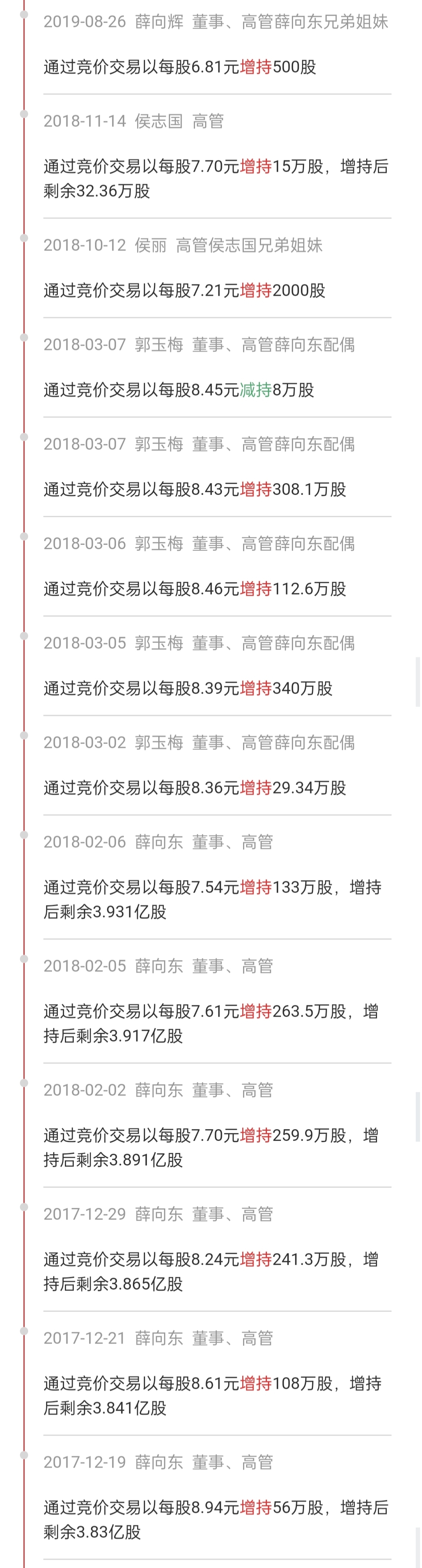 你们只看到了薛董事长减持,难道没有看到薛董事长2018年增持吗?人家8元多增持拿