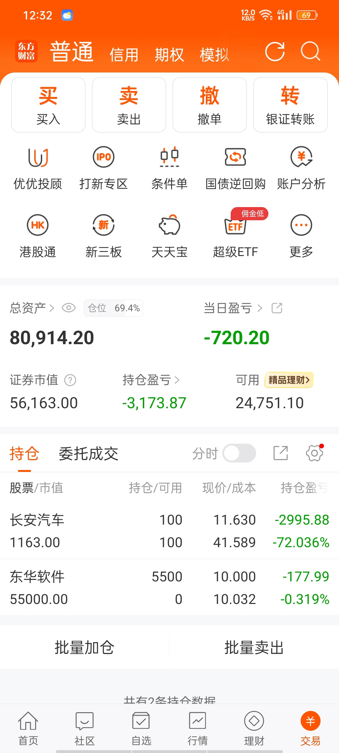 今天我卖了长安追高进来东华,又是亏,感觉又要被套了