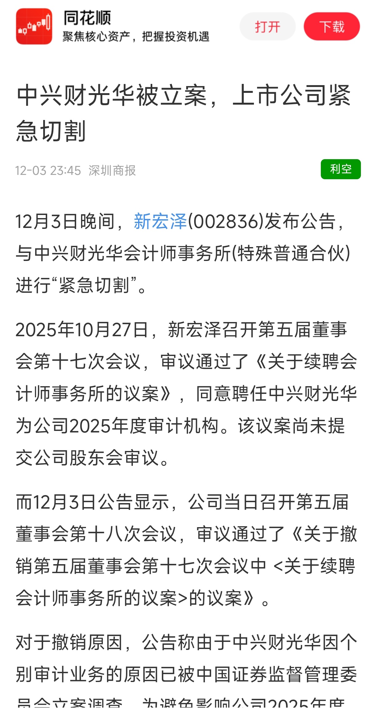 改聘会计事务所大家不要胡乱猜测,改聘会计事务所是因为中兴财光华被立案调查!A股有