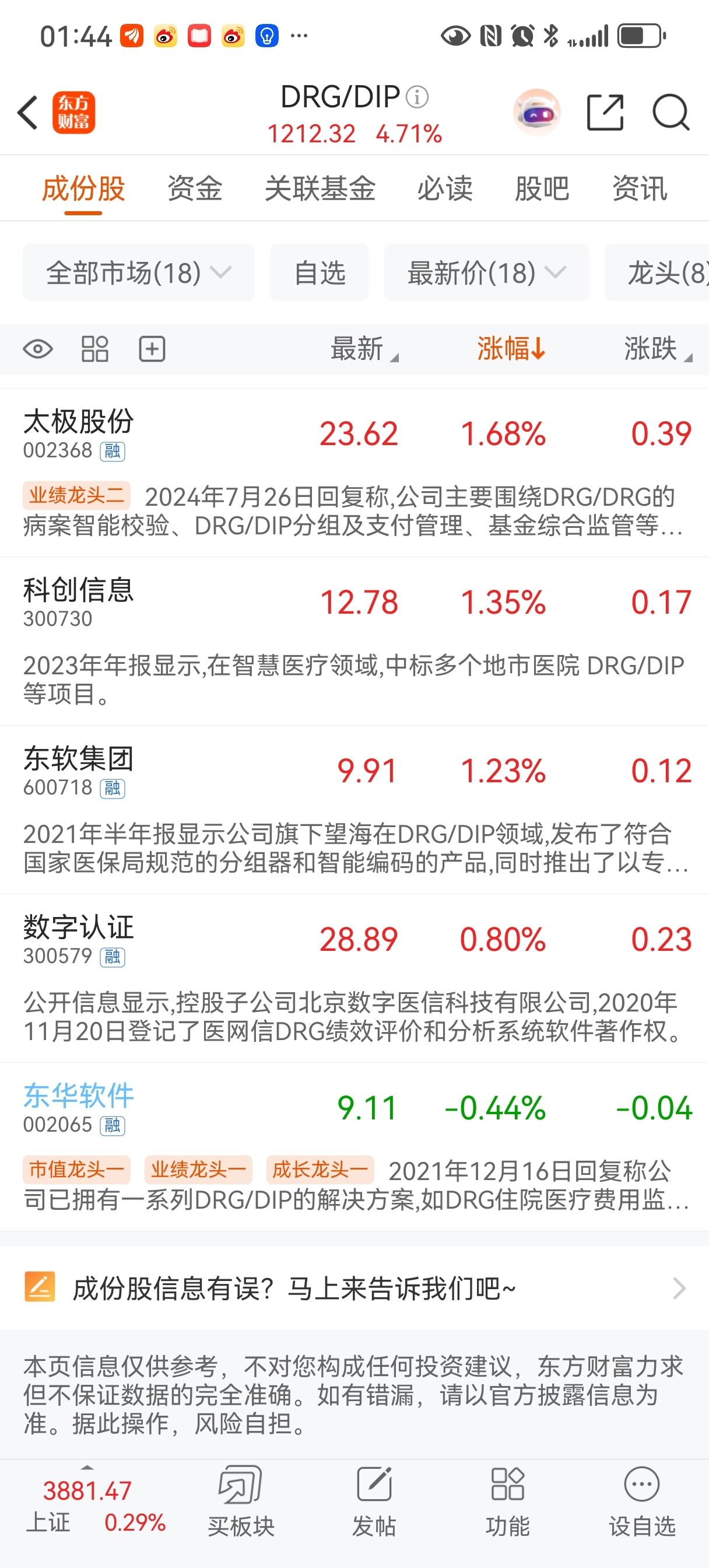 $东华软件(SZ002065)$ 板块倒数
