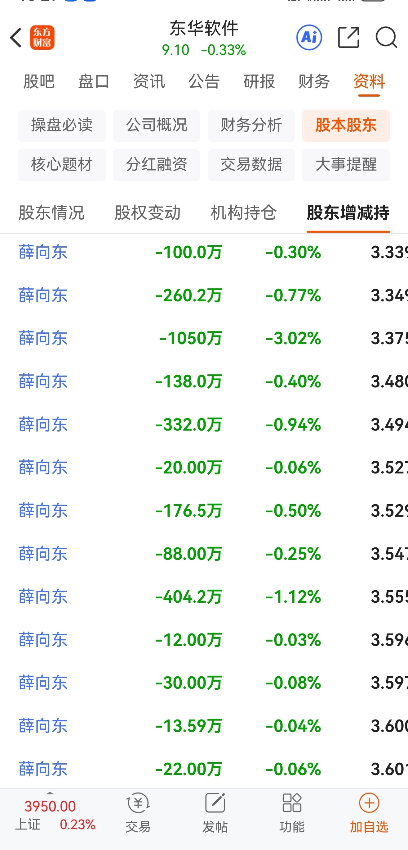 $东华软件(SZ002065)$ 老板一直在减持套现,股民们这样的公司值得炒作吗?