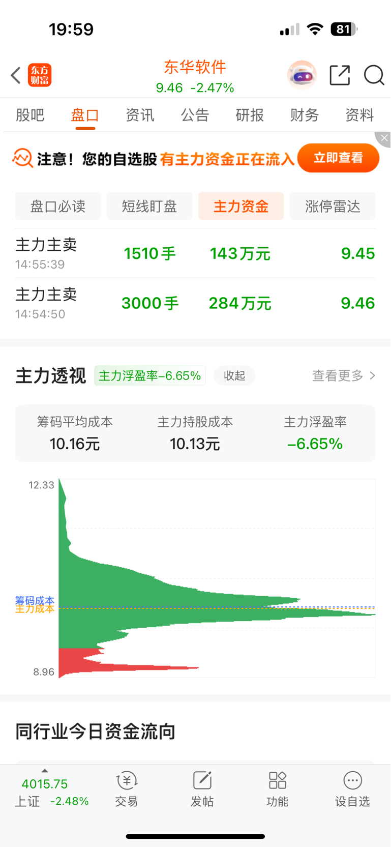 $东华软件(SZ002065)$ 主力成本10.13