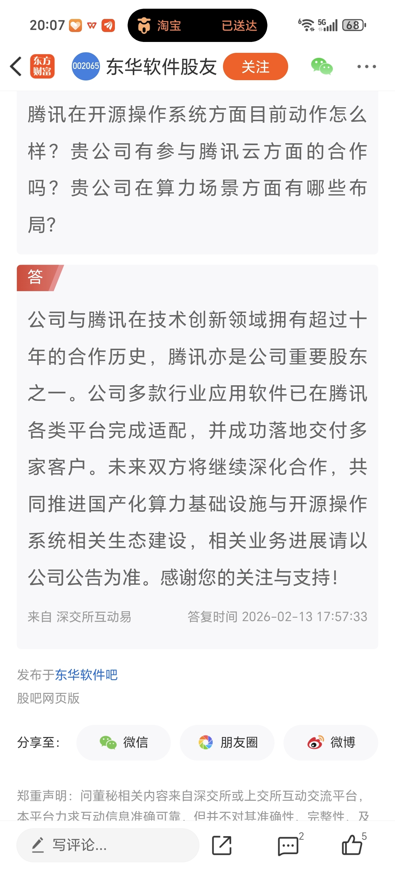 $东华软件(SZ002065)$ 腾讯是东华的股东?