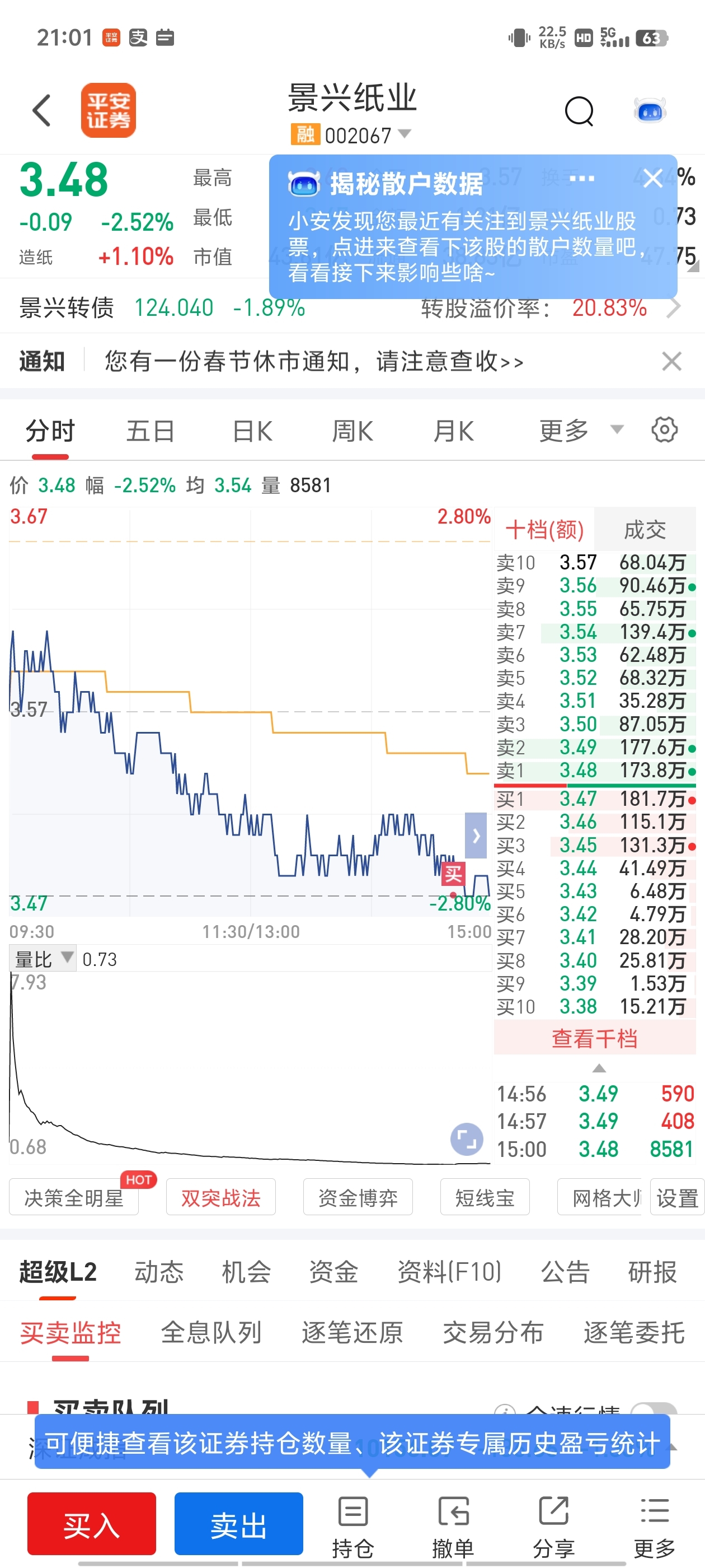 $景兴纸业(SZ002067)$ 内心慌的一批!感觉会破三块