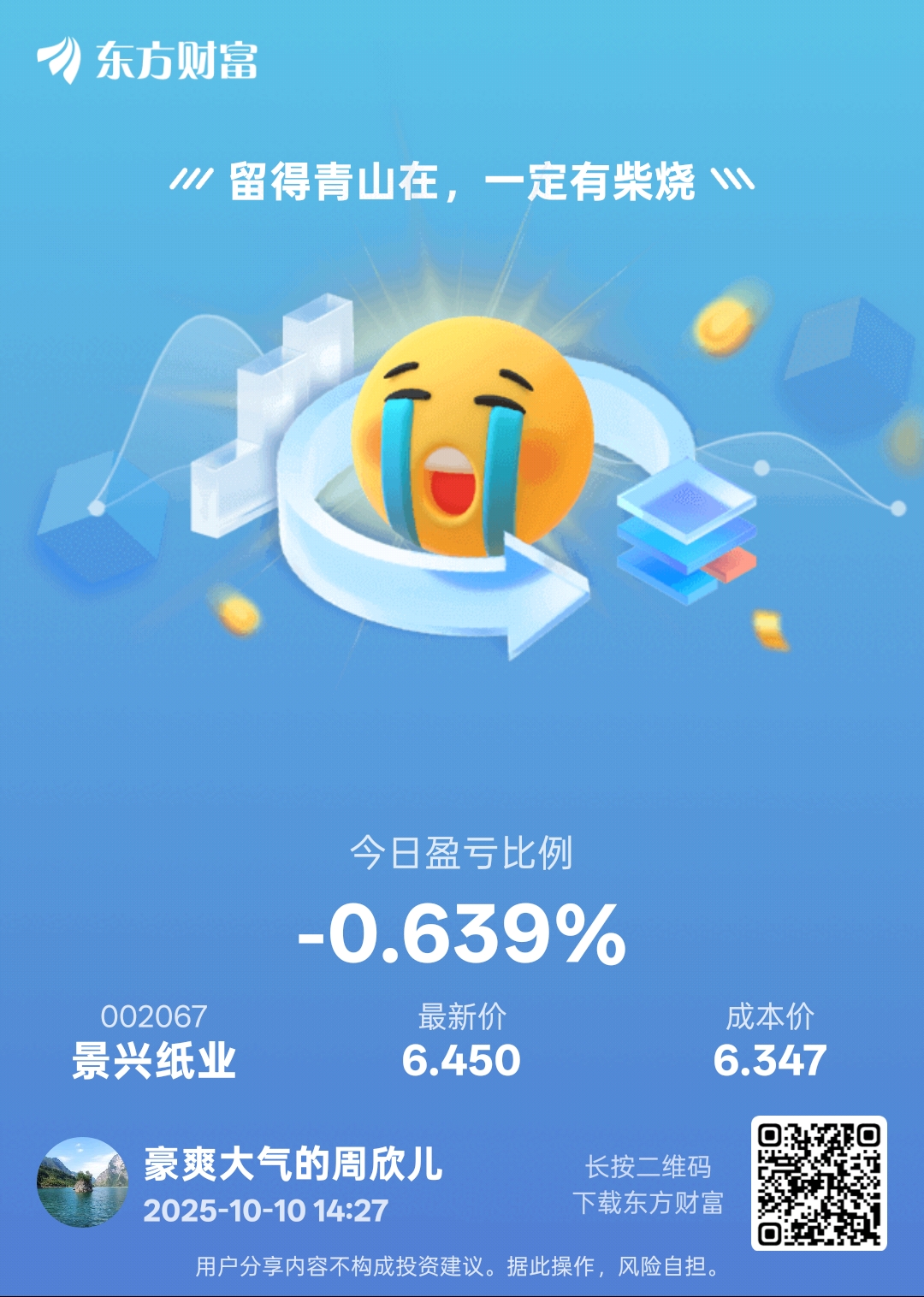 温馨提示: 1.根据《证券法》规定,禁止编造、传播虚假信息或者误导性信息,扰乱证券市场;2.用户在本社区发表的所有资料、言论等仅代表个人观点,与本网站立场无关,不对您构成任何投资建议。用户应基于自己的独立判断,自行决定证券投资并承担相应风险。《东方财富社区管理规定》
