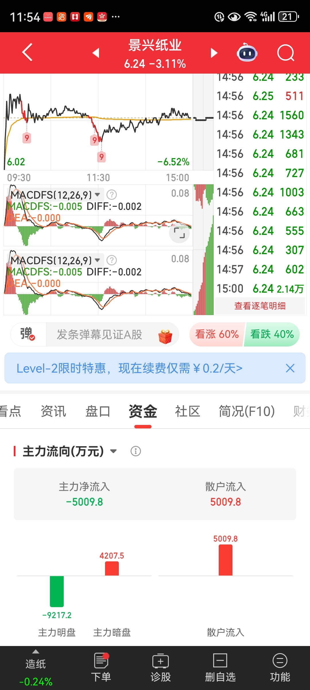 $景兴纸业(SZ002067)$ 今天行情,明盘上虽然流出一亿多资金,可是暗盘还是流入四千多万的,只是很多散户看不到而已.
