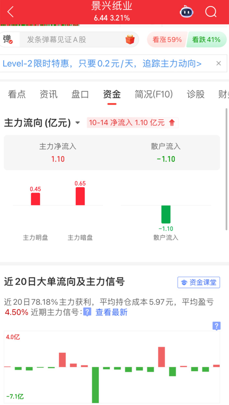 $景兴纸业(SZ002067)$ 上午收盘截止主力共流入1.1
