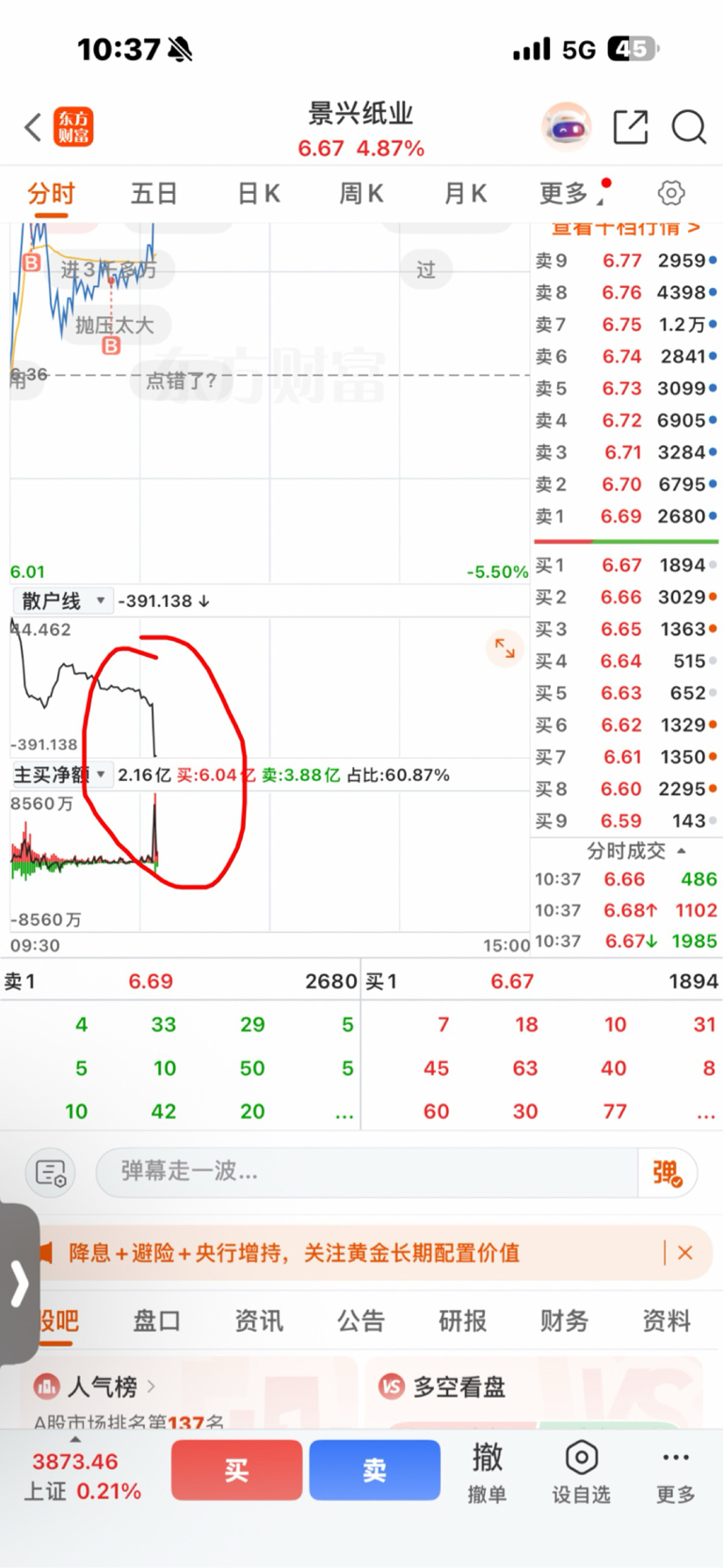 $景兴纸业(SZ002067)$ 就只是一瞬间憨皮散户的挂单全被吃了,