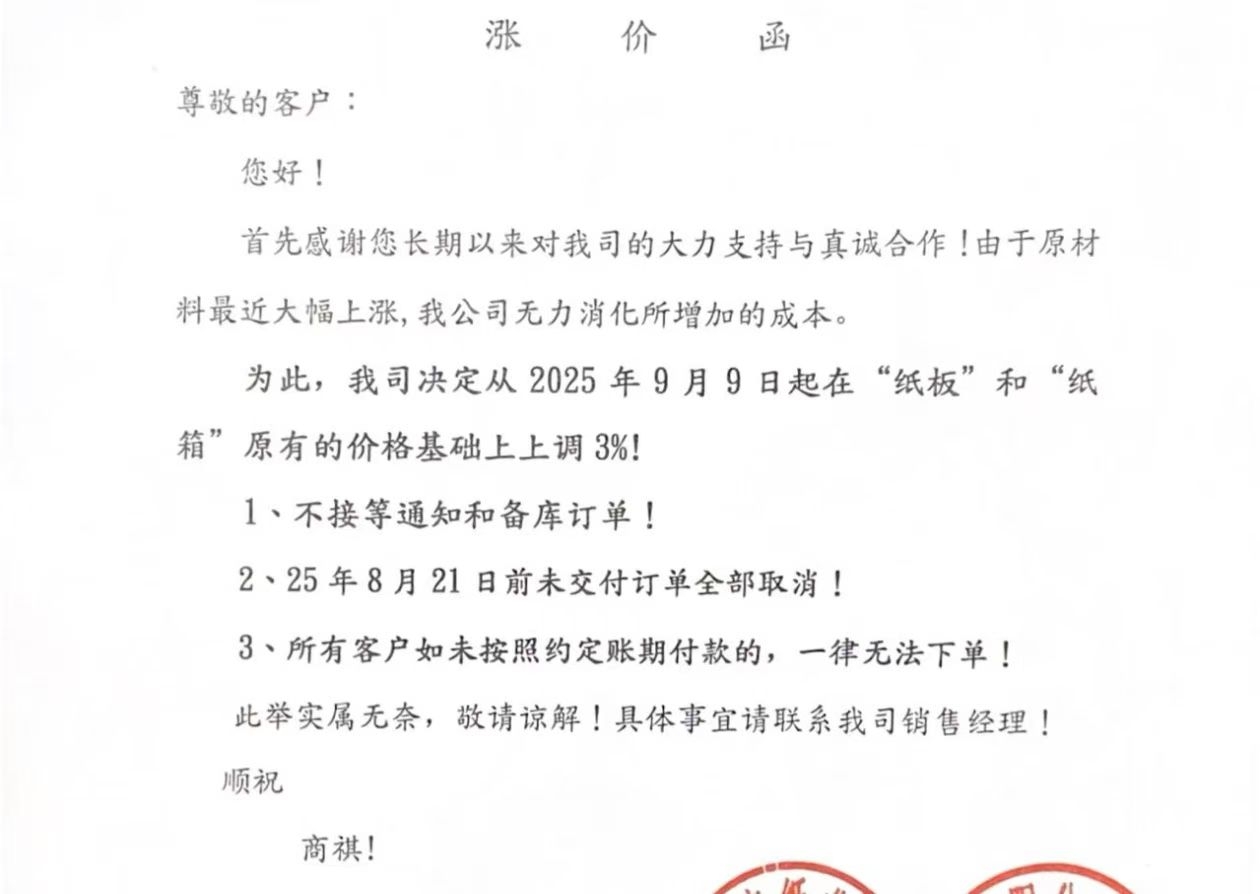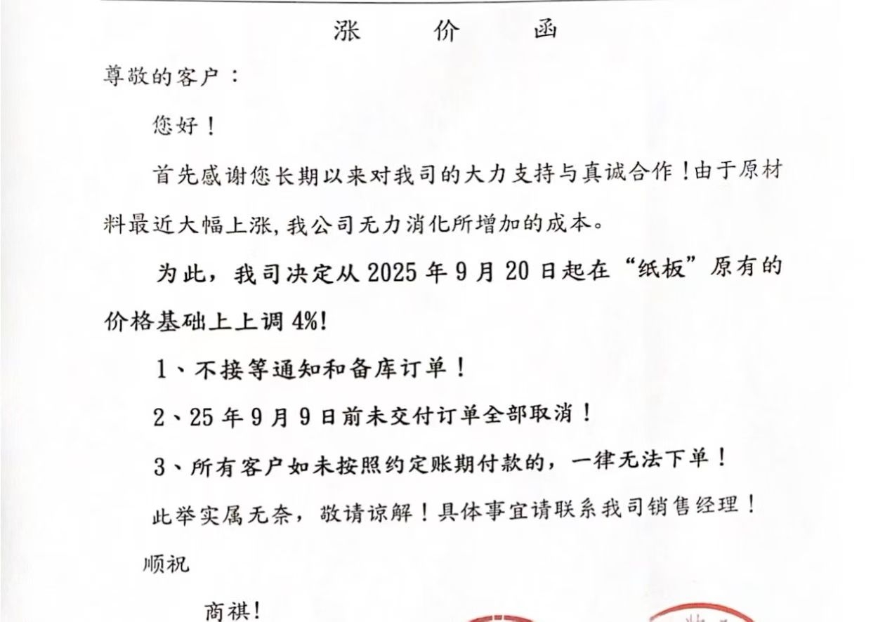 $景兴纸业(SZ002067)$ 纸板开始涨价了