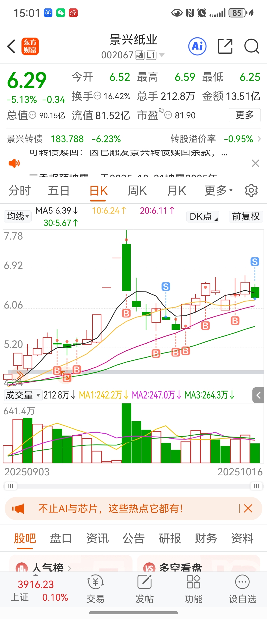 $景兴纸业(SZ002067)$ 我卖了,赚了一万多,主力你可以拉升了,留下的兄弟们发财