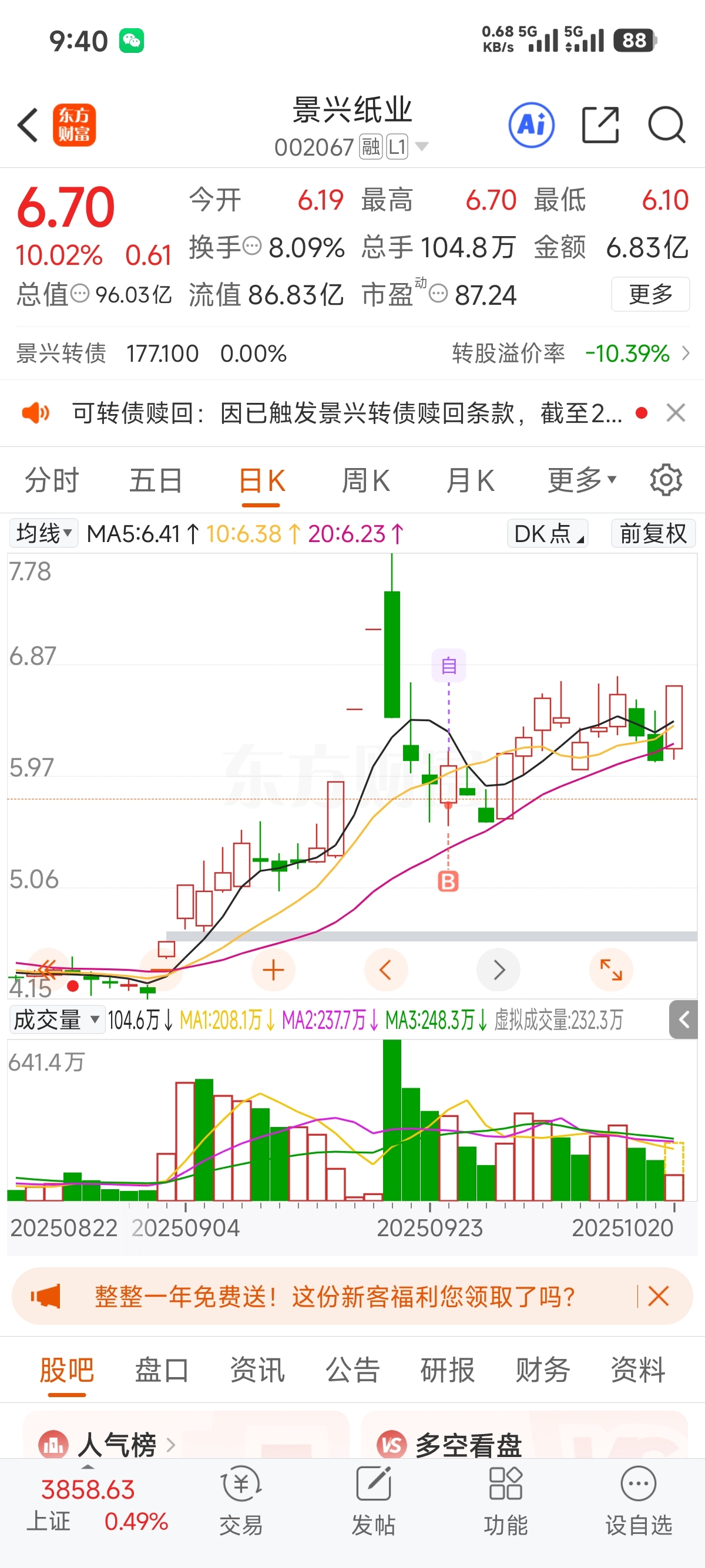 $景兴纸业(SZ002067)$ 兄弟们,守了那么久了,吃几个板出货?