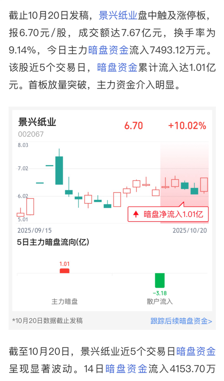 $景兴纸业(SZ002067)$ 收盘 助力净流入4.31