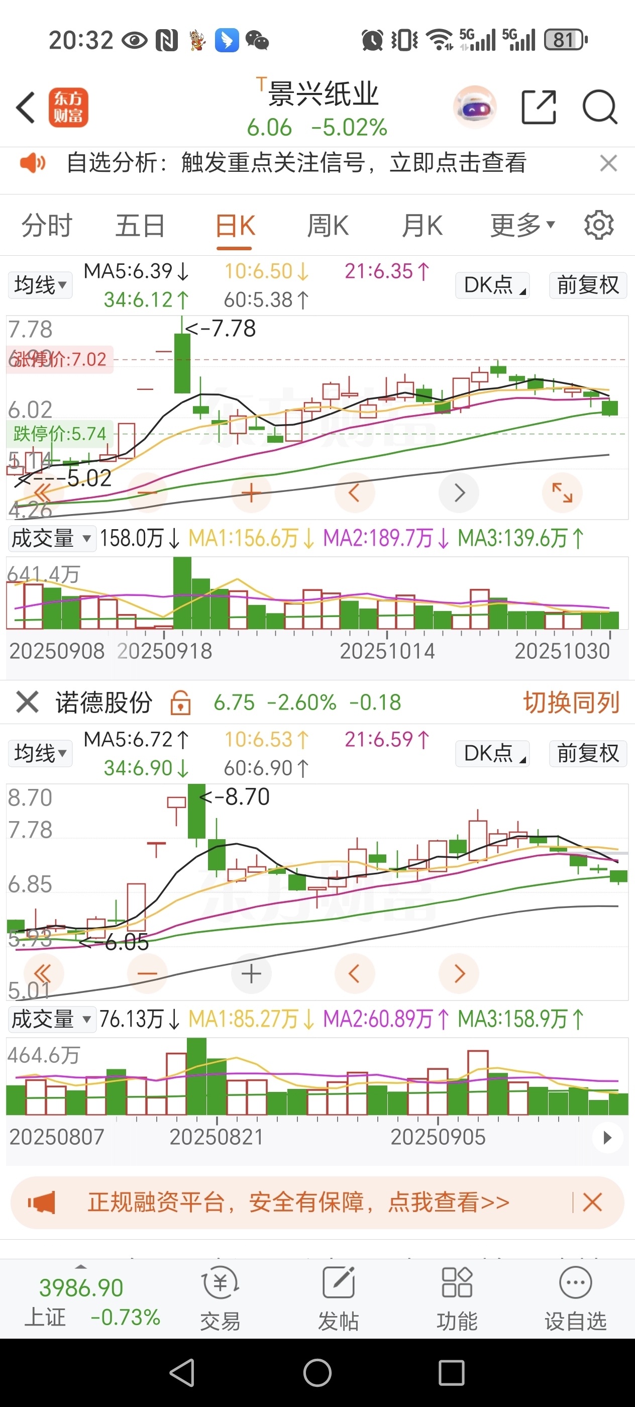 $景兴纸业(SZ002067)$ 不会是一个庄吧,千万别按诺德的走势,后边可是长长的阴跌