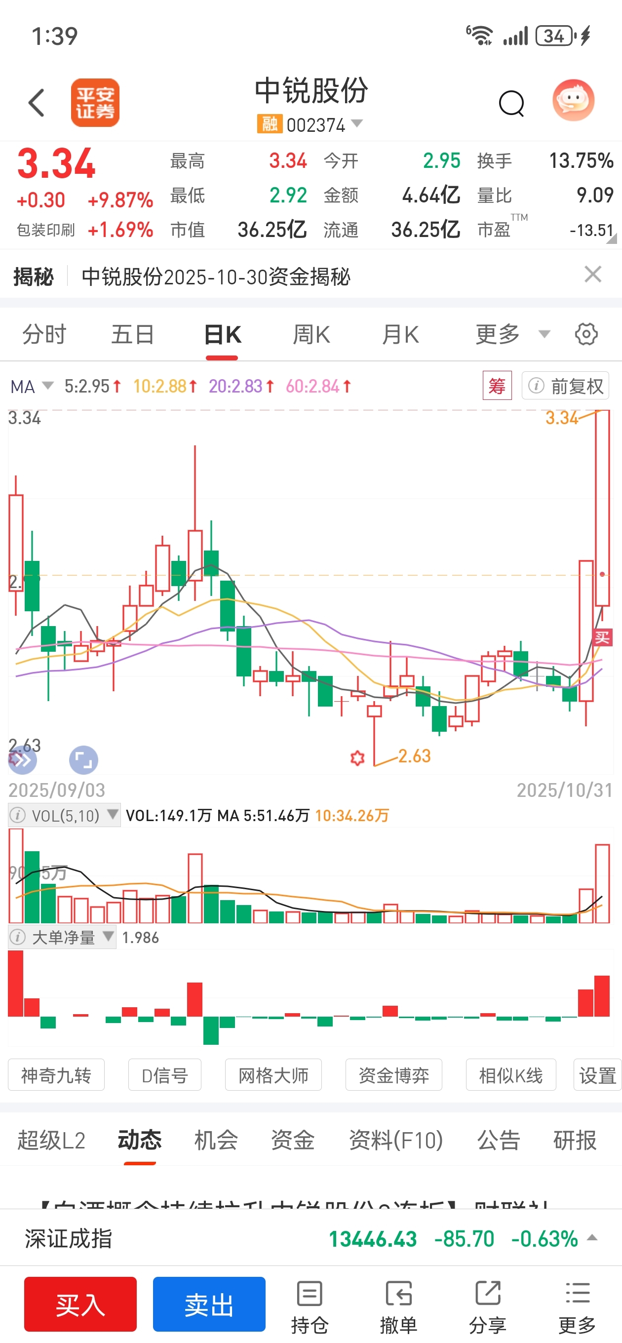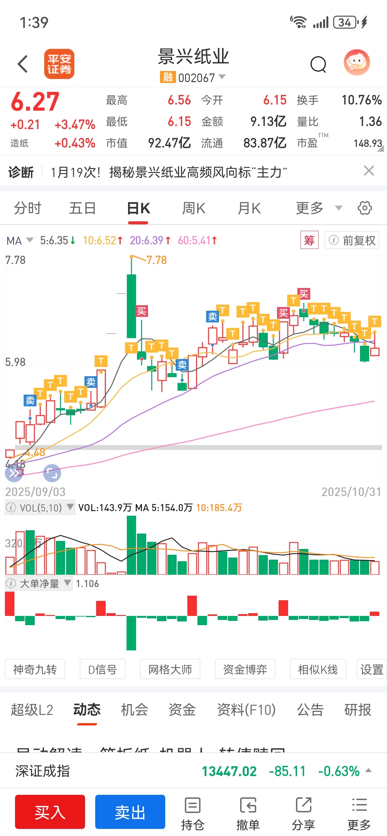 下跌中继,先撤退留100股,拉高反手3/4进了昨天选的一只,今天操作打90分吧