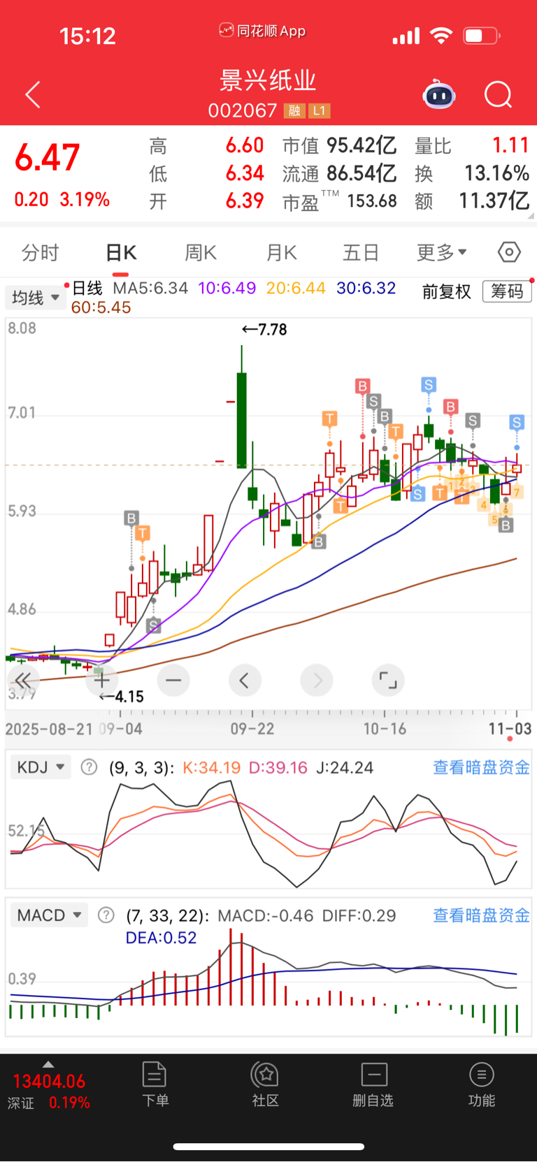 $景兴纸业(SZ002067)$ 周五买了,今天出了,也不知道对不对,下次再来,主力真强