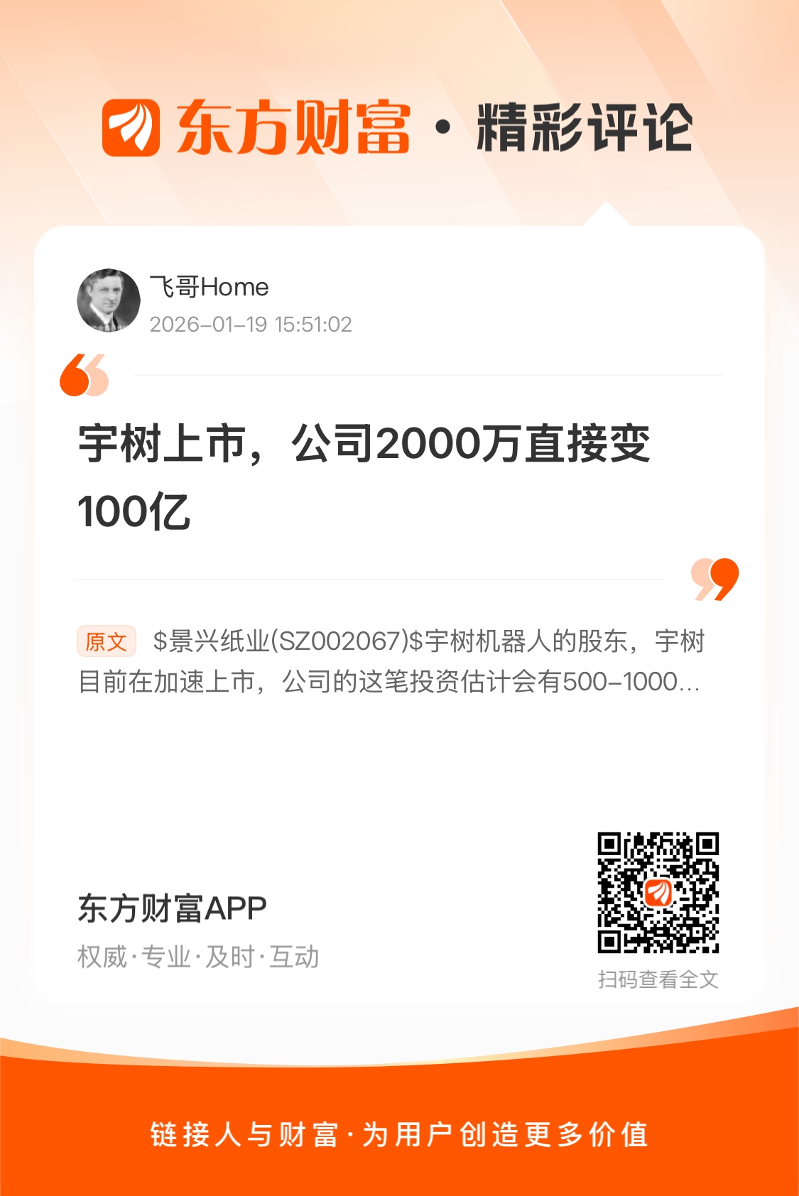 $景兴纸业(SZ002067)$ //@飞哥Home : 宇树上市,公司2000万直接变100亿
