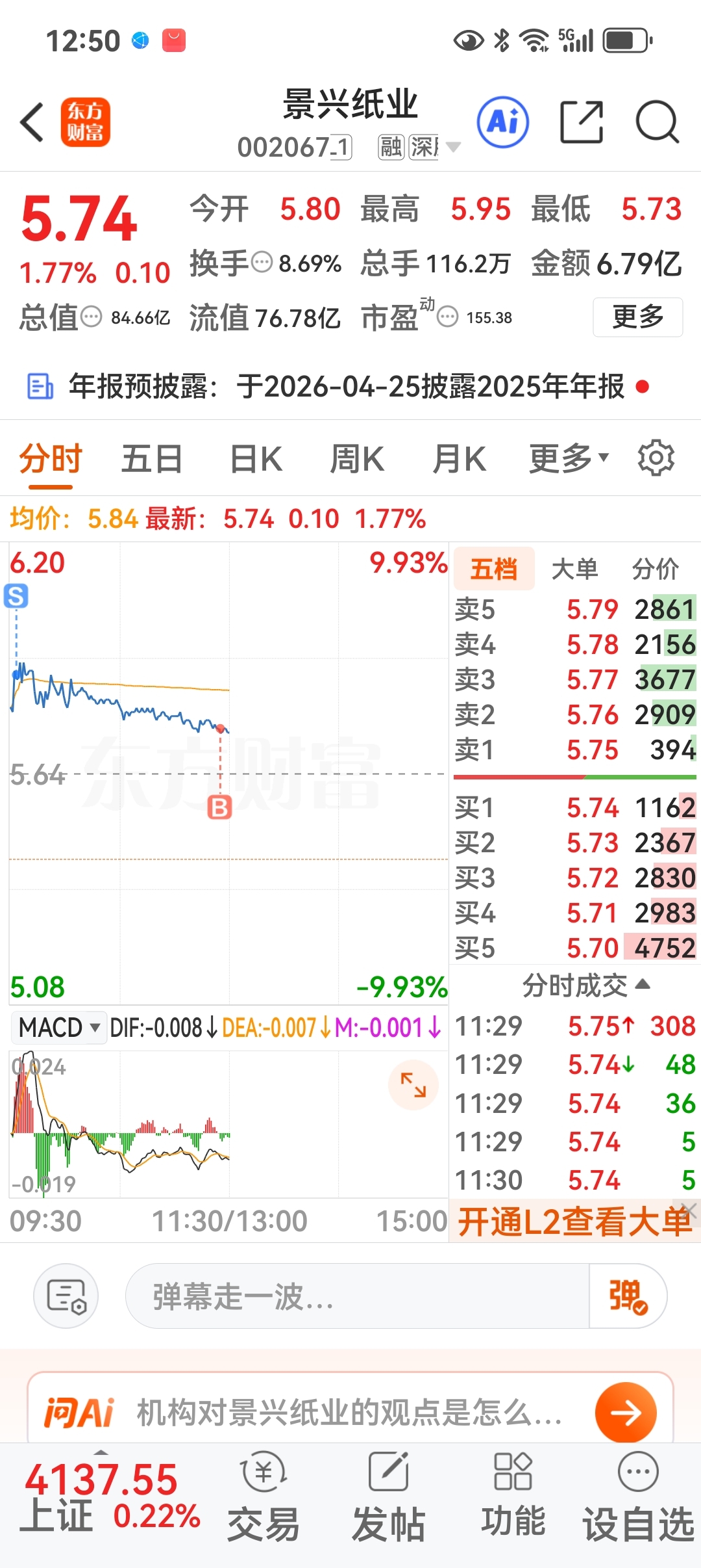 $景兴纸业(SZ002067)$ 你给我使劲跌!