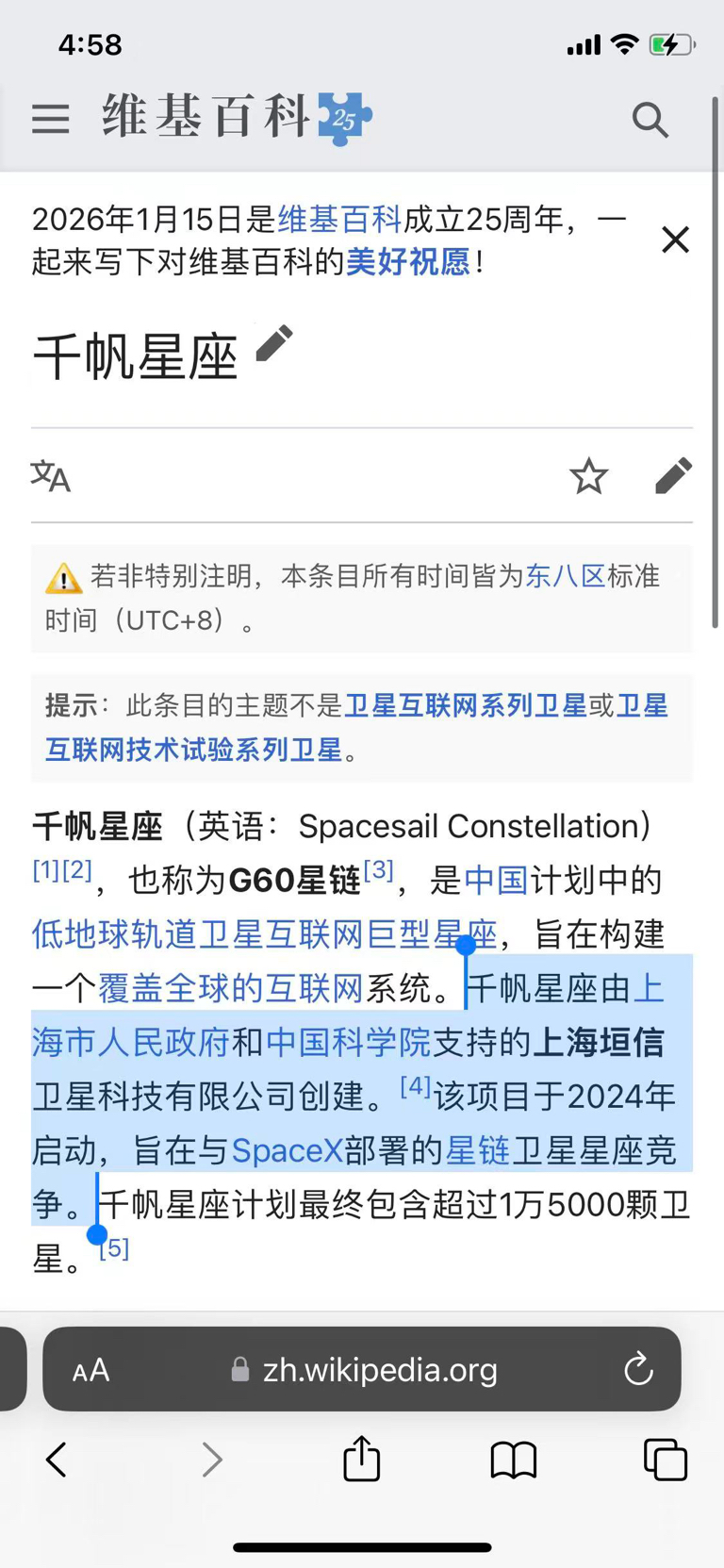 千帆星座(英语:Spacesail Constellation),也称为G60星链,是中国计划中的低地球轨道卫星互联网巨型星座,旨在构建一个覆盖全球的互联网系统。千帆星座由上海市人民政府和中国科学院支持的上海垣信卫星科技有限公司创建。该项目于2024年启动,旨在与SpaceX部署的星链卫星星座竞争。千帆星座计划最终包含超过1万5000颗卫星。