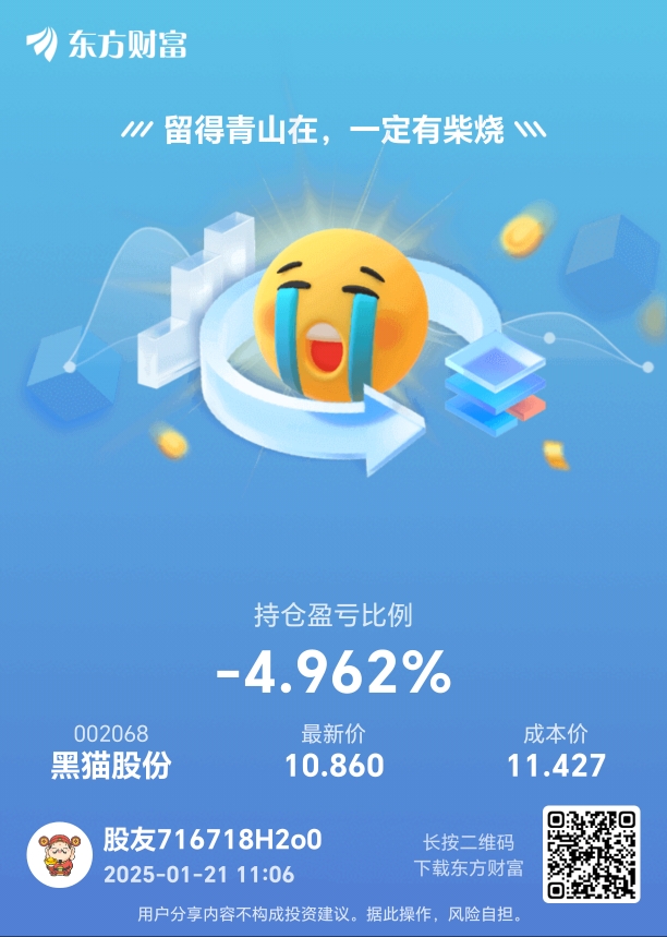 $黑猫股份(SZ002068)$ 明天跑不跑大佬们