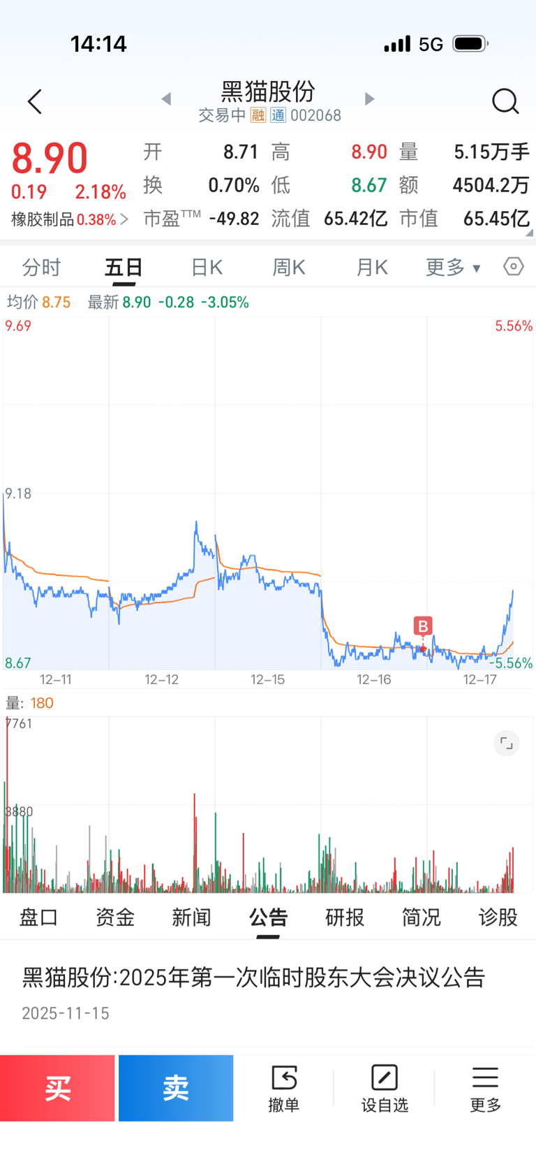 $黑猫股份(SZ002068)$ 黑猫还是不错的