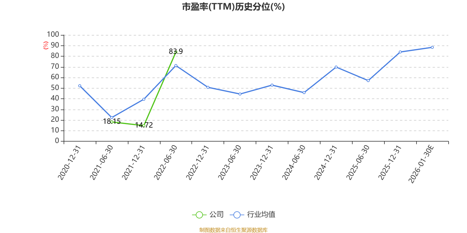 以本次披露业绩预告均值计算,公司近年市盈率(TTM)图如下所示: